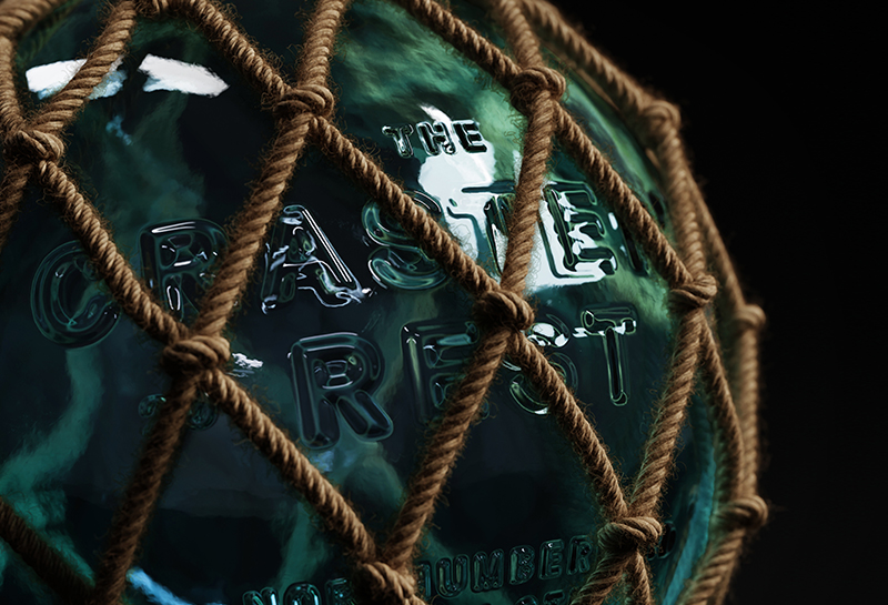L’autre défi consistait à coordonner les différents matériaux pour qu’ils s’harmonisent sans se concurrencer. Nous avions la texture du verre soufflé, la corde, l’étiquette en PVC en forme de col de manteau de pêcheur, mais c’est le bouchon qui a été le plus long à réaliser, un changement de dernière minute pour du bois vieilli à la place du liège a vraiment permis d’harmoniser les matériaux.