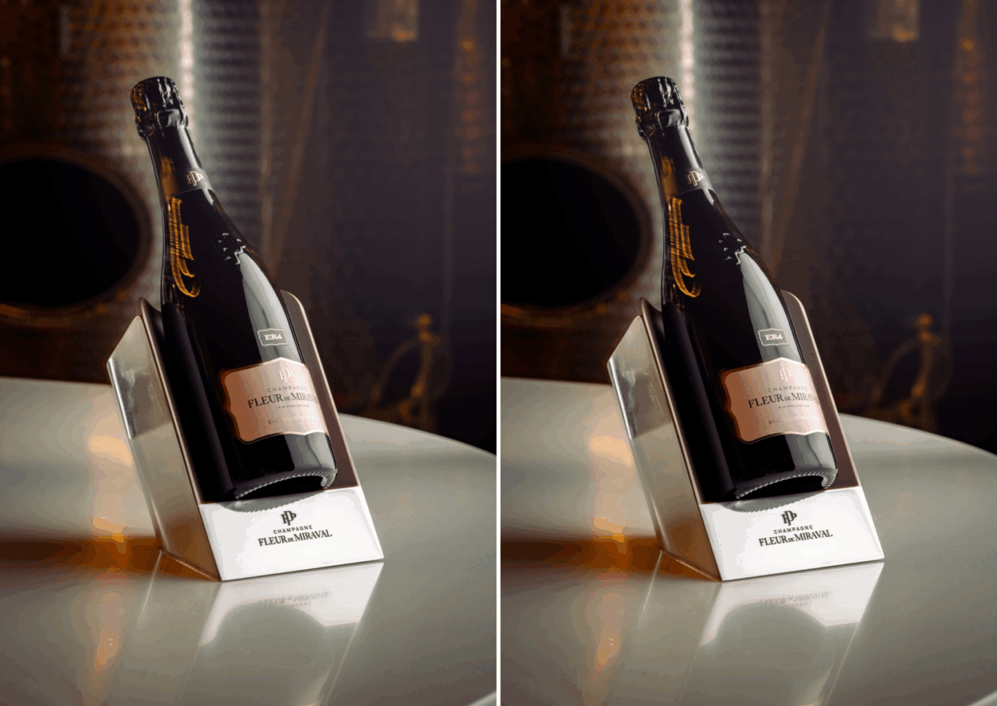 Sa fonction est claire : maintenir le champagne à une température idéale de 10 à 12 °C, sans jamais altérer ses arômes. Ce dispositif préserve les subtiles évolutions de la cuvée. À la fois objet de design et instrument technique, il incarne la philosophie de Fleur de Miraval : célébrer le contraste et offrir une expérience sensorielle unique.